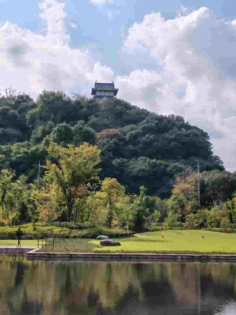如庵茶会の初日、午前の部に犬山城下の有楽苑へ伺いました。天気は薄曇り、犬山遊園駅より国宝犬山城を望むことができます。