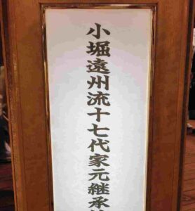 On a clear, blue-sky day in November, the grand celebration marking the succession of the 17th Grand Master of the Kobori Enshu Ryu was held at the Fuji Room of the Imperial Hotel in Tokyo.